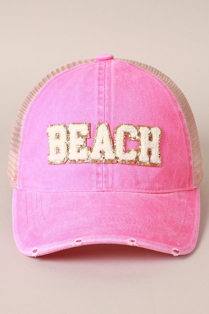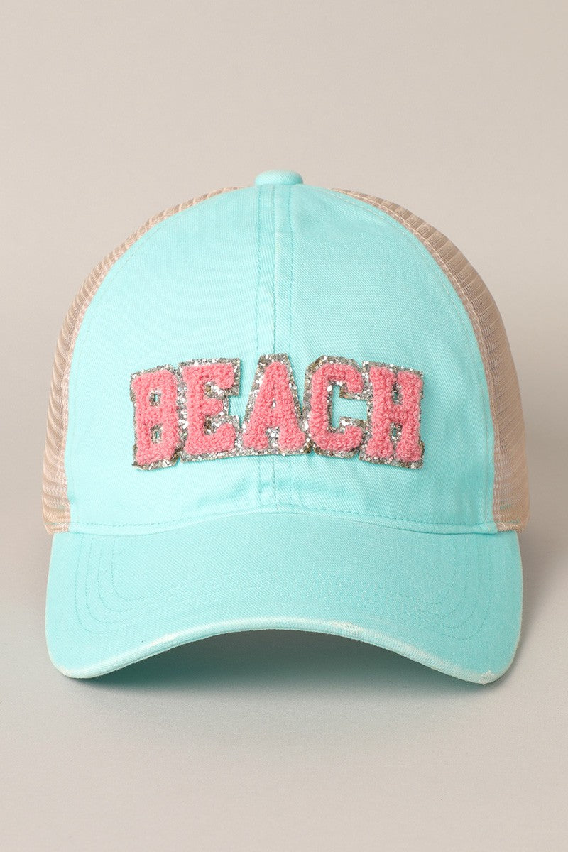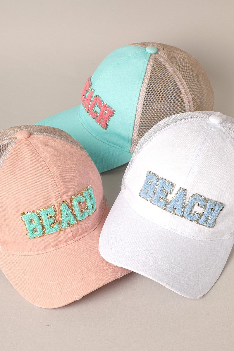 Beach Chenille Metallic Backing Patch Baseball Cap
