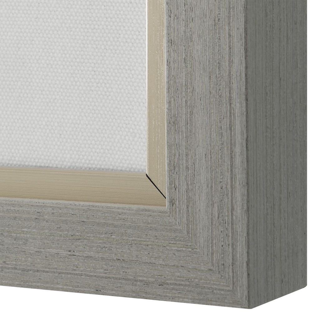 Bring timeless elegance to your walls with this sophisticated framed botanical art. Delicate flora rendered in calming sage, navy, and neutral hues are beautifully preserved under glass, each complemented by a crisp off-white linen mat. The refined gray wood-tone frames feature a subtle champagne liner that adds understated luxury. Perfect for creating a cohesive gallery wall or anchoring a serene bedroom or living space with botanical charm and refined style.