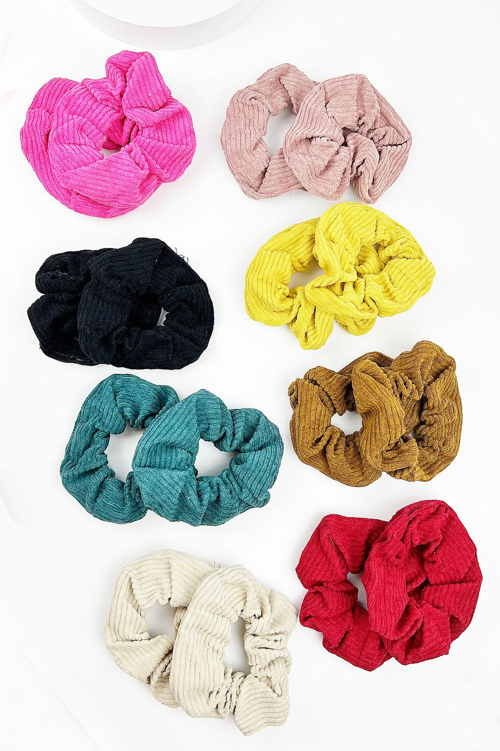 Assorted Color knit scrunchie hair tie, great for all hair types.