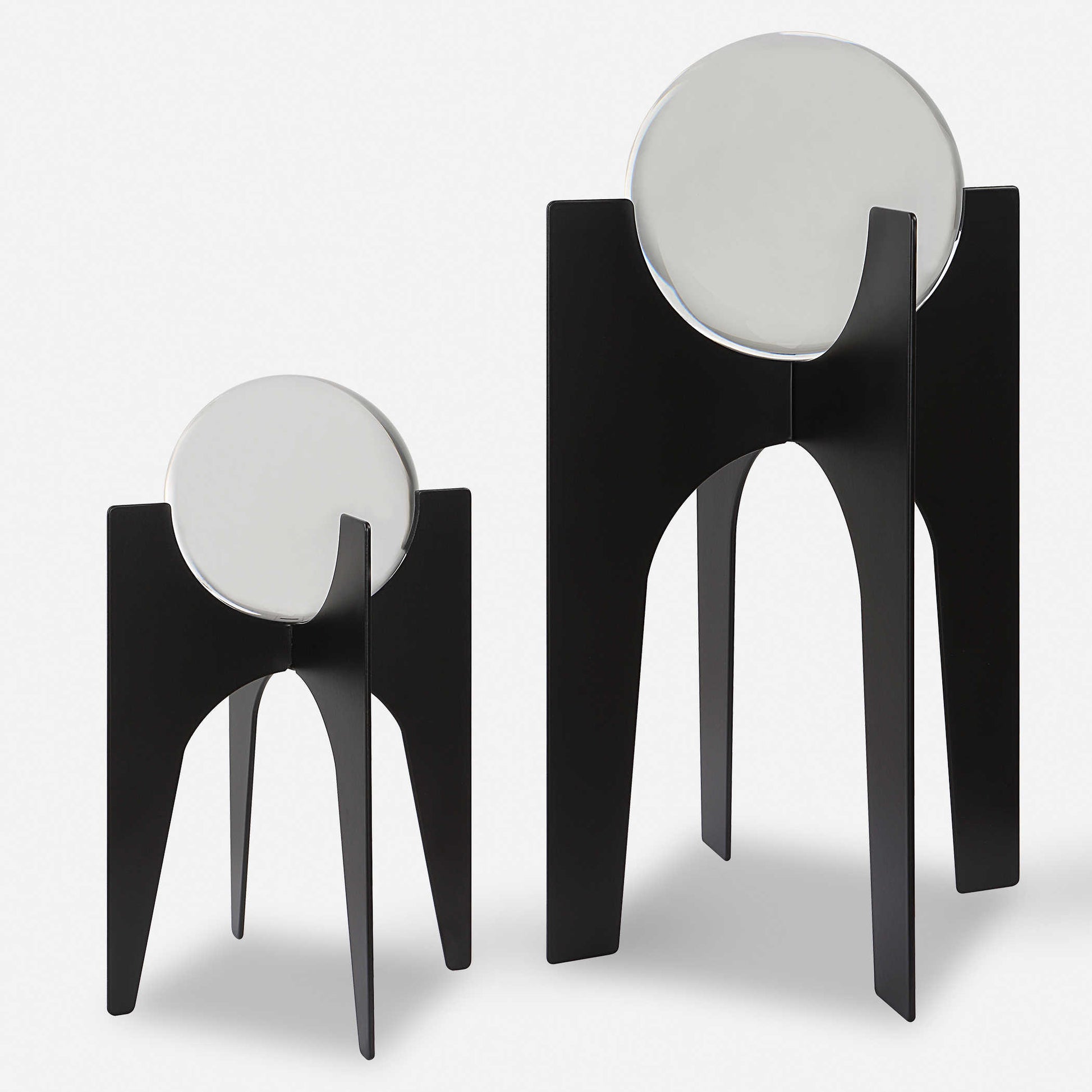 The combination adds a modern, elegant touch to any home decor. With the unique finishing, these sculptures are a statement piece that exudes quality and sophistication.