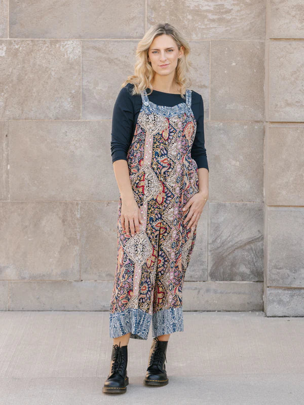 The prints are limited runs to be mindful of limiting our fabric waste. We have combined deconstructed vintage denim and upcycled them into many of the designs, this diverts it from the landfills and gives it new life.