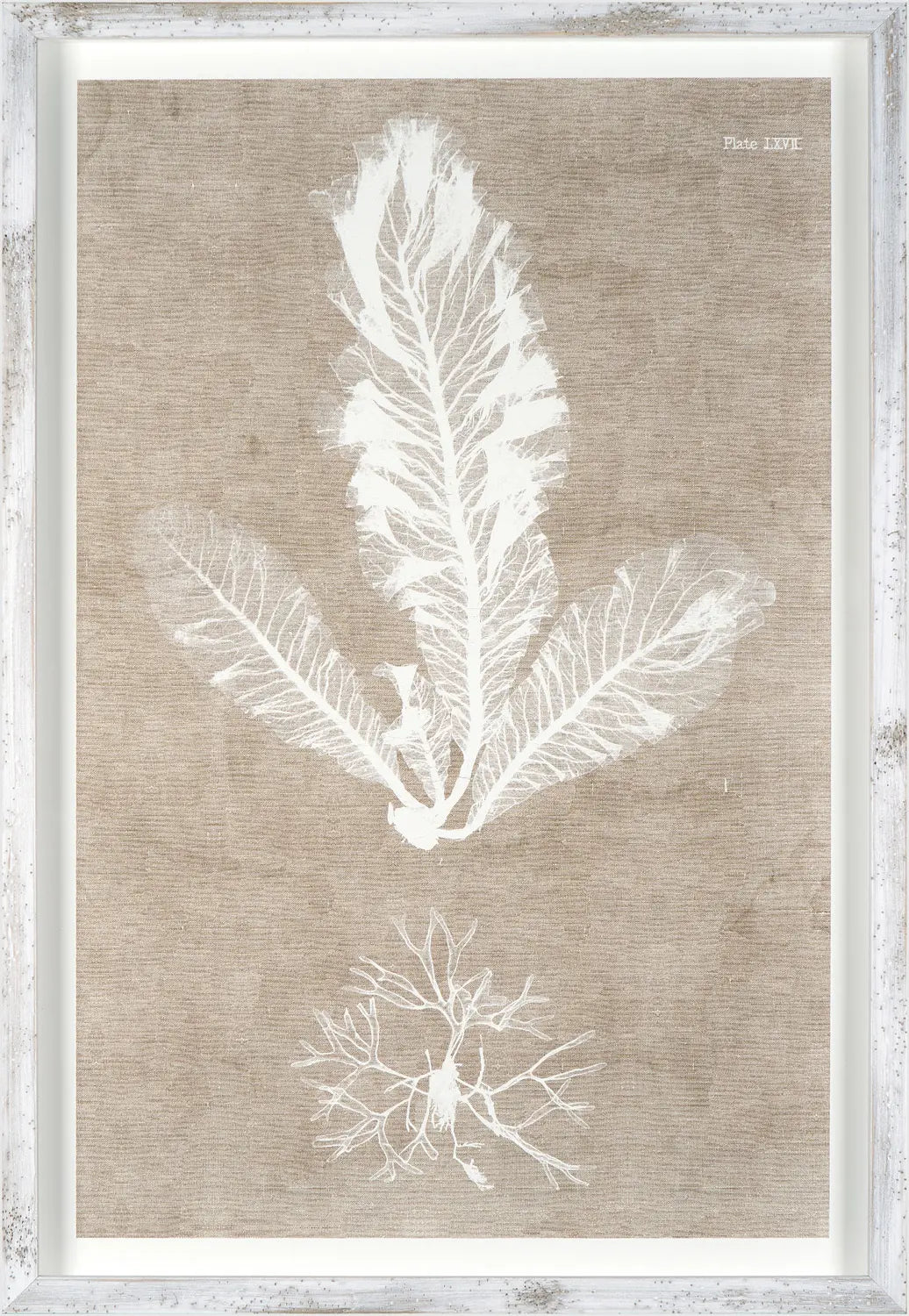Classic and casual, these natural sea plant images printed on a linen texture set a comfortable and elegant tone complimented by their rustic frames.