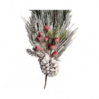 This elegant snowy pick features a natural pinecone accent, perfectly capturing the essence of a winter forest. Designed for seasonal decorating, it adds a touch of rustic charm and festive spirit to wreaths, centerpieces, and holiday arrangements. T