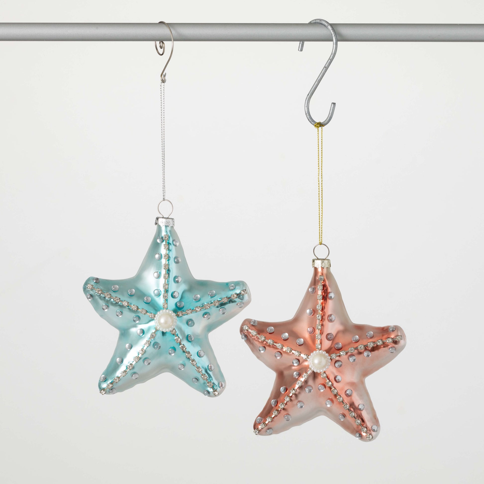 These iridescent starfish ornaments will add a touch of coastal cheer to your Christmas tree. The handcrafted glass starfish ornaments have vibrant hues- one iridescent salmon and one iridescent blue- that shimmer and shine with an irresistible beachy vibe. A pearl nestles in the center of each starfish, adding an elegant twist to the nautical theme. Pair these starfish baubles with other coastal decorations for a Christmas tree that transports guests to a tropical island getaway, if only in their imagination.