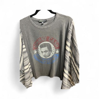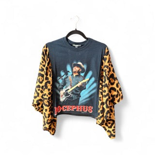 This vintage-inspired country band tee is crafted from upcycled country band shirts, combined with deconstructed vintage denim to create a unique, one-of-a-kind garment. Designed in Canada and made in Thailand, each piece repurposes materials to reduce waste and landfill impact, offering sustainable style rooted in thoughtful craftsmanship.