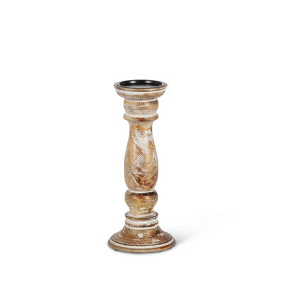 This 12-inch tall white washed mango wood candle holder make the perfect accent pieces for any dining room table or living room. Each candle holder is large enough to accommodate up to a 3-inch diameter candle.