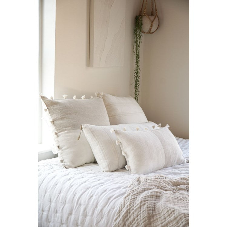 White with Beige Stripes So Soft Linen Pillow